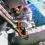 A SPACEWALKING astronaut put aside the impending birth of his daughter and blazed through his first-ever venture outside the International Space Station.
