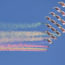 Paragliders fly over the city during a military parade to mark Qatar’s National Day celebrations in Doha, Qatar, Dec 18, 2021. John Russell